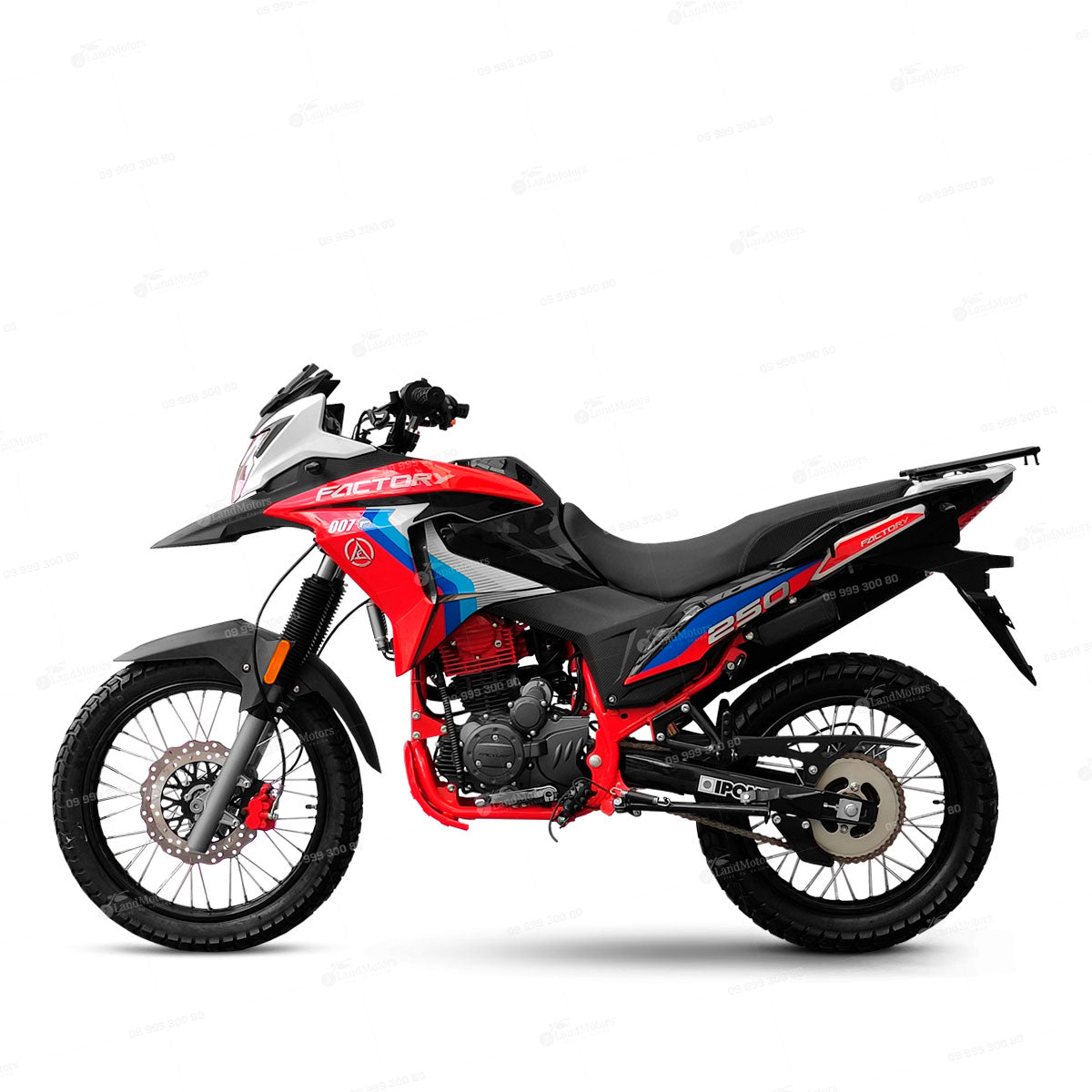 La Factory Agente 007 es una motocicleta todoterreno de 250 cc diseñada para ofrecer potencia, agilidad y estilo en diversos tipos de terreno. A continuación, se detallan sus características principales: