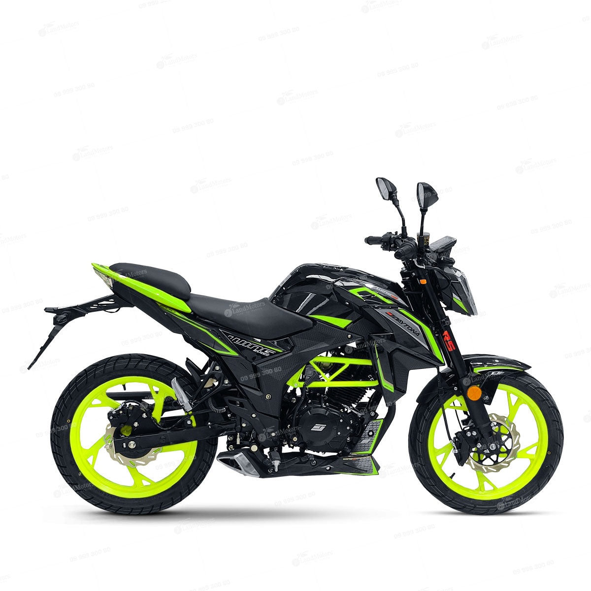 El diseño deportivo de la moto, con líneas agresivas y colores llamativos, la hace destacar en las calles. Además, cuenta con un faro LED y un velocímetro digital que no solo aportan al estilo moderno de la moto, sino que también ofrecen funcionalidad adicional para una experiencia de conducción más completa.
