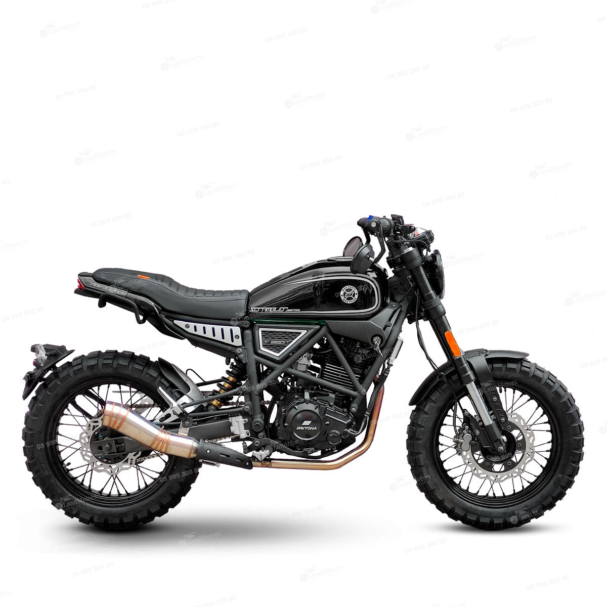 La Daytona DY250 Scrambler Revolution es una motocicleta que fusiona el estilo clásico de las scramblers con tecnología moderna, ofreciendo una experiencia de conducción única. Su motor de 250 cc proporciona una potencia adecuada para recorrer tanto la ciudad como caminos de tierra, mientras que su diseño robusto y componentes de calidad aseguran durabilidad y confort en cada viaje.